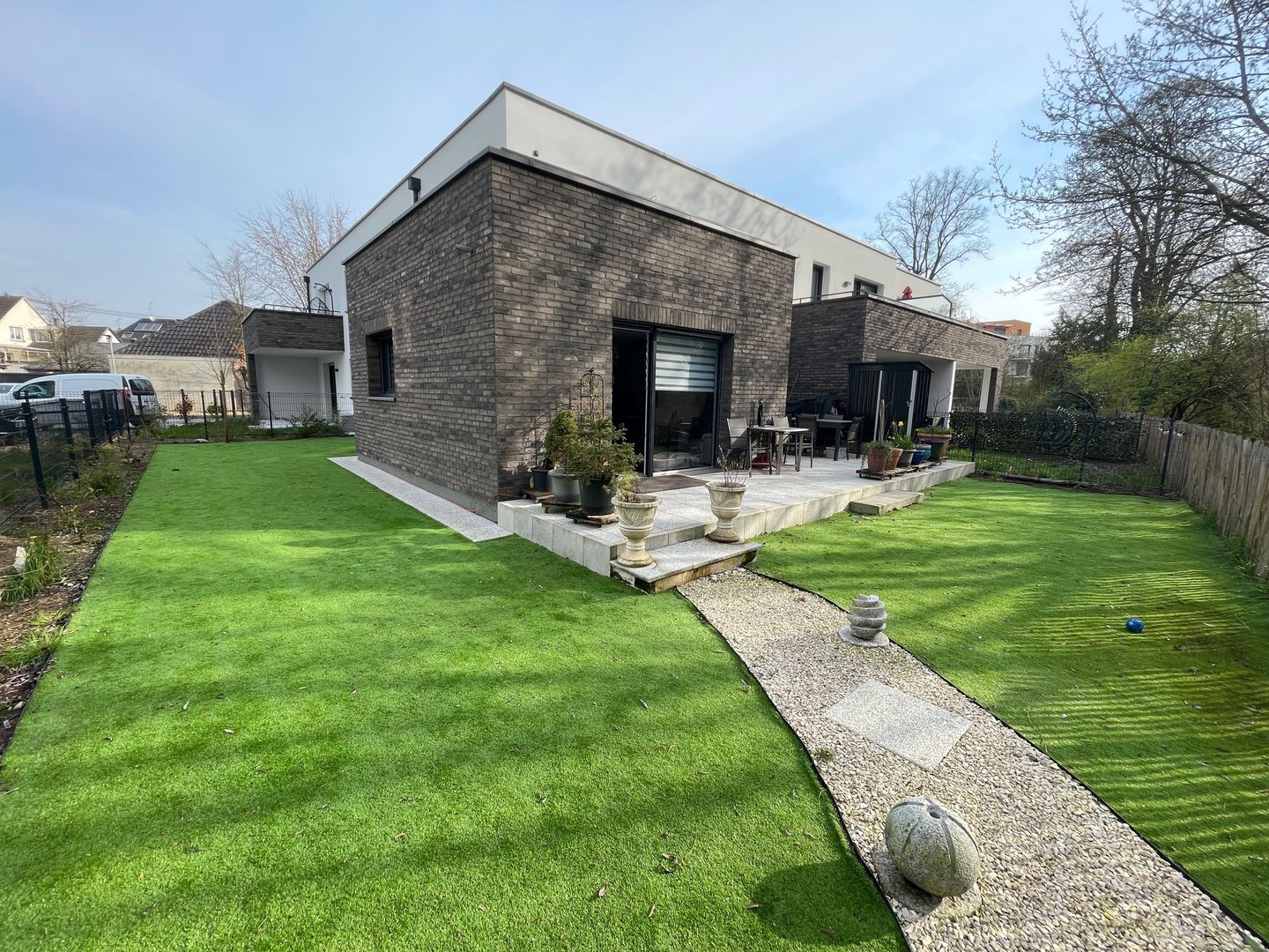 Jardin cloturé et aménagé.